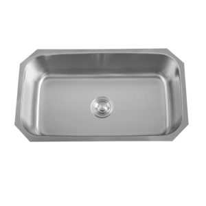 This single bowl undermount stainless steel sink is constructed with premium 18 gauge 304 Series stainless steel. 304 Series of “surgical grade” stainless steel is nonporous, hygienic, rust free and extremely durable. This contemporary sink is hand crafted and boasts radius corners, straight walls and extra deep bowls. The bottom has a undercoating applied and is fitted with sound deadening pads. These features help deaden sound attenuation and act to reduce condensation buildup on the bottom of the sink.