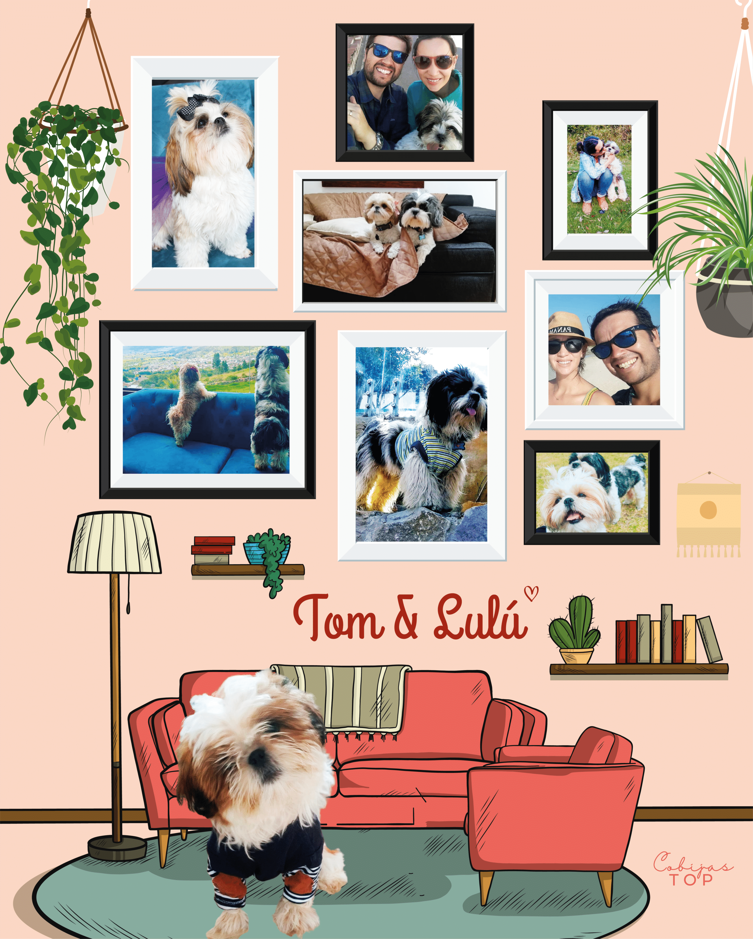 • Diseño: Tu peludo será el protagonista; recopila las 8 fotos que más te gusten de esa persona que tanto amas. Elige el color del fondo de tu Cobija en nuestra paleta de colores y escribe el nombre de la persona.