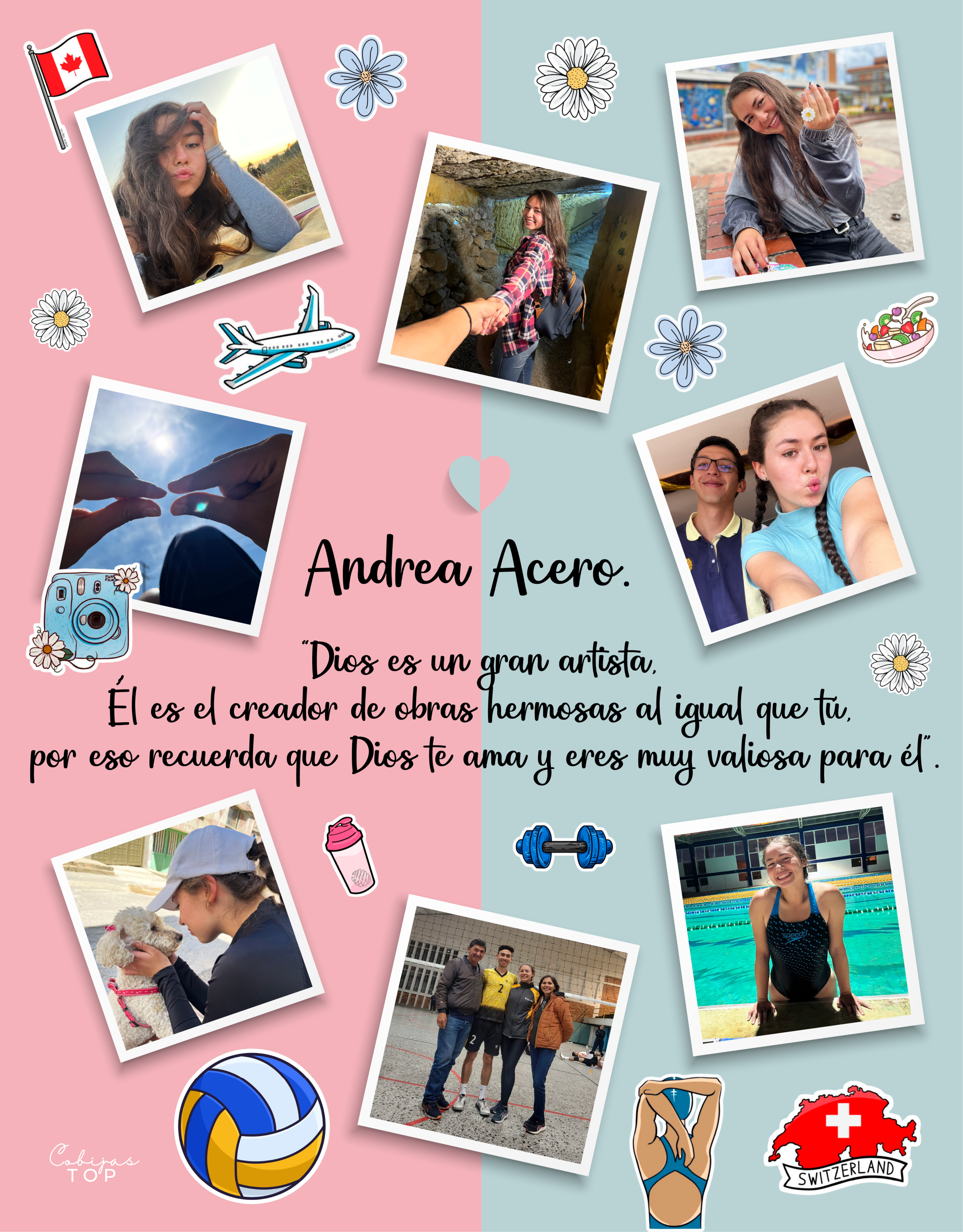 - Diseño: Elige las (7) fotos que más te gusten de esa persona que tanto amas. Para el diseño puedes usar hasta 2 colores, poner su nombre y escribirle una hermosa frase. Cuéntanos qué es lo que más le gusta para darle un toque original a tu diseño. (Deporte favorito, comida favorita, hobbies favoritos, etc…)